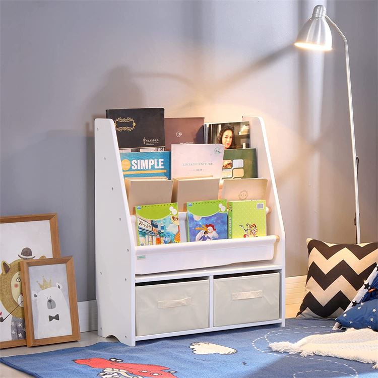 इस बच्चों के शेल्फ में दो दराज हैं जो किताबों, खिलौनों आदि के लिए स्टोरेज स्पेस बढ़ाते हैं।