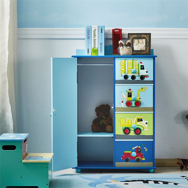 ●ब्लू बच्चों की अलमारी 4 दराज के साथ